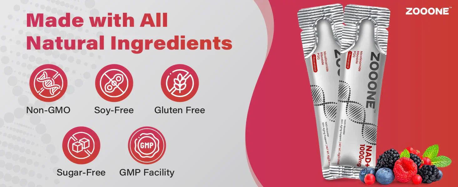 Si vous vous sentez constamment fatigué, confus ou que votre peau perd son éclat, votre corps pourrait réclamer une remise à zéro. ZOOONE NR1000™ est un puissant mélange à base de boisson de NAD+ au délicieux goût de baies, qui s’attaque à la racine du vieillissement cellulaire tout en augmentant votre énergie, en améliorant votre concentration et en restaurant un éclat de jeunesse de l’intérieur. Ce n’est pas seulement une boisson—c’est un renouveau quotidien à chaque gorgée.